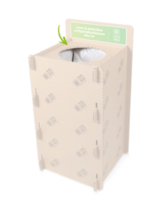 Rijnvicus verzamelt de versleten schoenen in speciale boxen. Deze staan op de Distributieweg en op de Olympiaweg. Alle medewerkers van Rijnvicus die nieuwe werkschoenen ontvangen, leveren de versleten schoenen in.